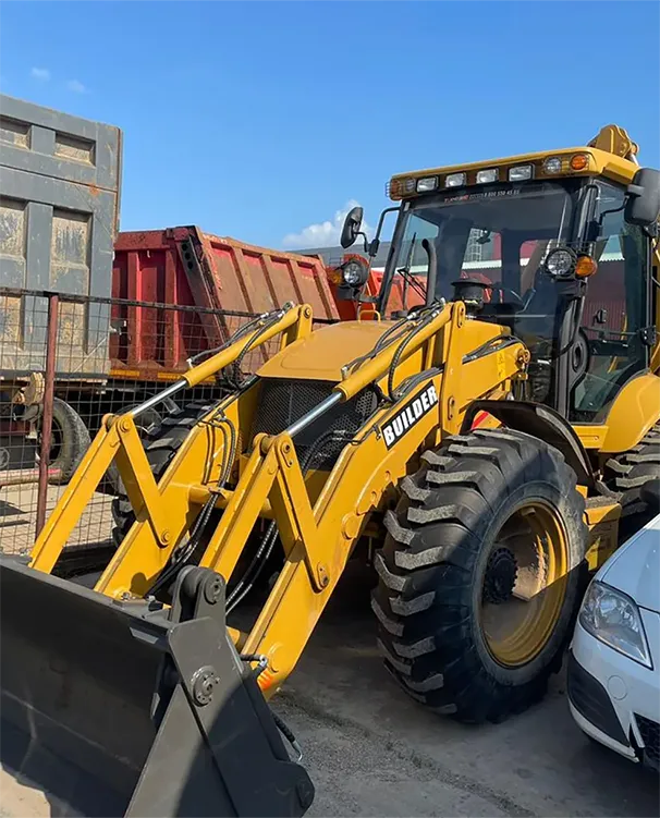 Колесный экскаватор-погрузчик BUILDER BL488 2023 г.в. в отличном состоянии (1 владелец, 138 м.ч.). Оснащен дизельным двигателем YUCHAI (102 л.с.), телескопической экскаваторной рукоятью и челюстным ковшем 4в1.